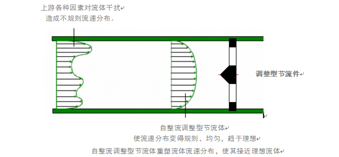 安為制造(美國(guó))公司(Iamway Manufacture Co.)經(jīng)過(guò)長(zhǎng)期試驗(yàn)、應(yīng)用和數(shù)據(jù)積累,自主研發(fā)的調(diào)整型流量計(jì)(Conditioning Flowmeter),是一種新型的差壓式流量計(jì),它繼承了傳統(tǒng)差壓流量計(jì)結(jié)構(gòu)簡(jiǎn)單、安全可靠、便于檢修維護(hù)的優(yōu)點(diǎn),在流體力學(xué)原理的基礎(chǔ)上,獨(dú)特研發(fā)了自整流結(jié)構(gòu)設(shè)計(jì)和節(jié)流孔的微積分學(xué)和統(tǒng)計(jì)學(xué)四孔等效均勻?qū)ΨQ分布,這種雙重作用,即調(diào)整型節(jié)流體,可以使流體在接近調(diào)整型節(jié)流體時(shí),調(diào)整型節(jié)流體自身即能將流體的流速曲線調(diào)整到適合測(cè)量的理想狀態(tài) (Put it into a proper state for use),使其滿足流量計(jì)算伯努利方程對(duì)流體的要求,同時(shí)流體通過(guò)調(diào)整型節(jié)流體后可以將渦流調(diào)整到最小,產(chǎn)生高頻低幅信號(hào),使輸出的信號(hào)精確而穩(wěn)定。這一新型自整流調(diào)整型節(jié)流裝置,可以對(duì)上游流體的流速分布曲線重新整流,這一節(jié)流方式的變化,帶來(lái)了差壓式流量測(cè)量技術(shù)的一場(chǎng)革命性的創(chuàng)新突破和應(yīng)用。