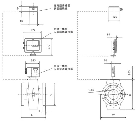 2、DN700~DN1600分體防爆型傳感器外形和常規(guī)儀表相同。