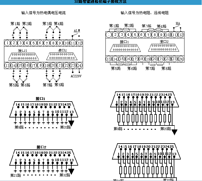 報警輸出: ⑴1-64通道統(tǒng)一上下限報警,繼電器輸出觸點容量 AC220V/3A