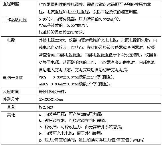 ZC-3000-4壓力校驗(yàn)儀的技術(shù)參數(shù):