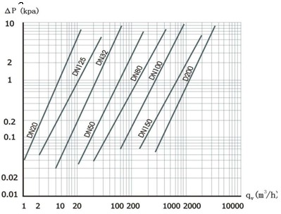 ΔP ¬——介質(zhì)為干空氣時流量計的壓力損失(KPa),其特性曲線見下圖
