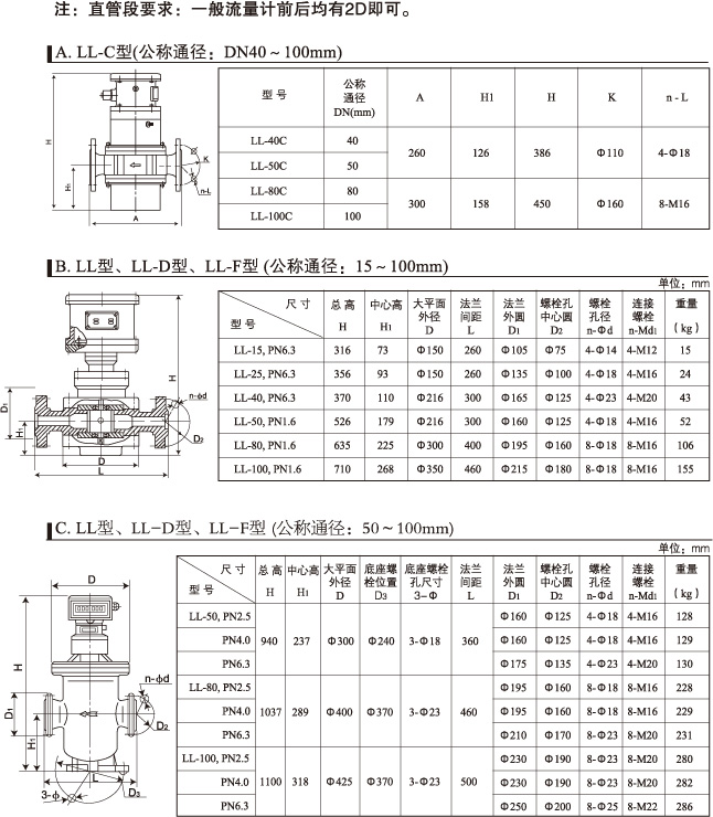 一、確定公稱通徑:根據(jù)實(shí)際工作時(shí)的流量Q(常用流量),按照30%Qmax<Q<80%Qmax,確定Qmax,并由Qmax,從“主要技術(shù)指標(biāo)”表中,確定流量計(jì)的公稱通徑。