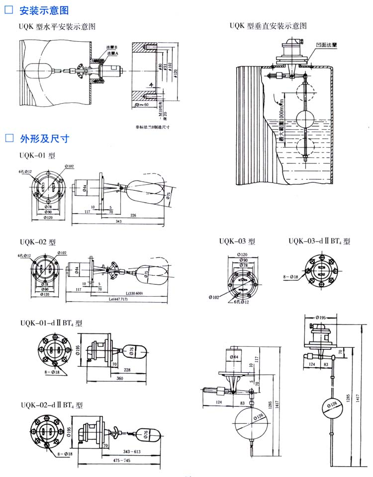 UQK-01、UQK-02、UQK-03型浮球液位控制器適用于對各種容器內(nèi)液體的液體控制,當(dāng)液位到達上、下切換值時,控制器觸點發(fā)出通斷開關(guān)式信號。產(chǎn)品系列分防爆或非防爆兩大類,防爆型能用于易燃和易 爆介質(zhì)為1.2級及A、B、C組承壓容器的液位控制??刂破鞑贿m用于對黃銅、不銹鋼等材料有較強腐蝕作用以及含有導(dǎo)磁雜質(zhì)的介質(zhì)。